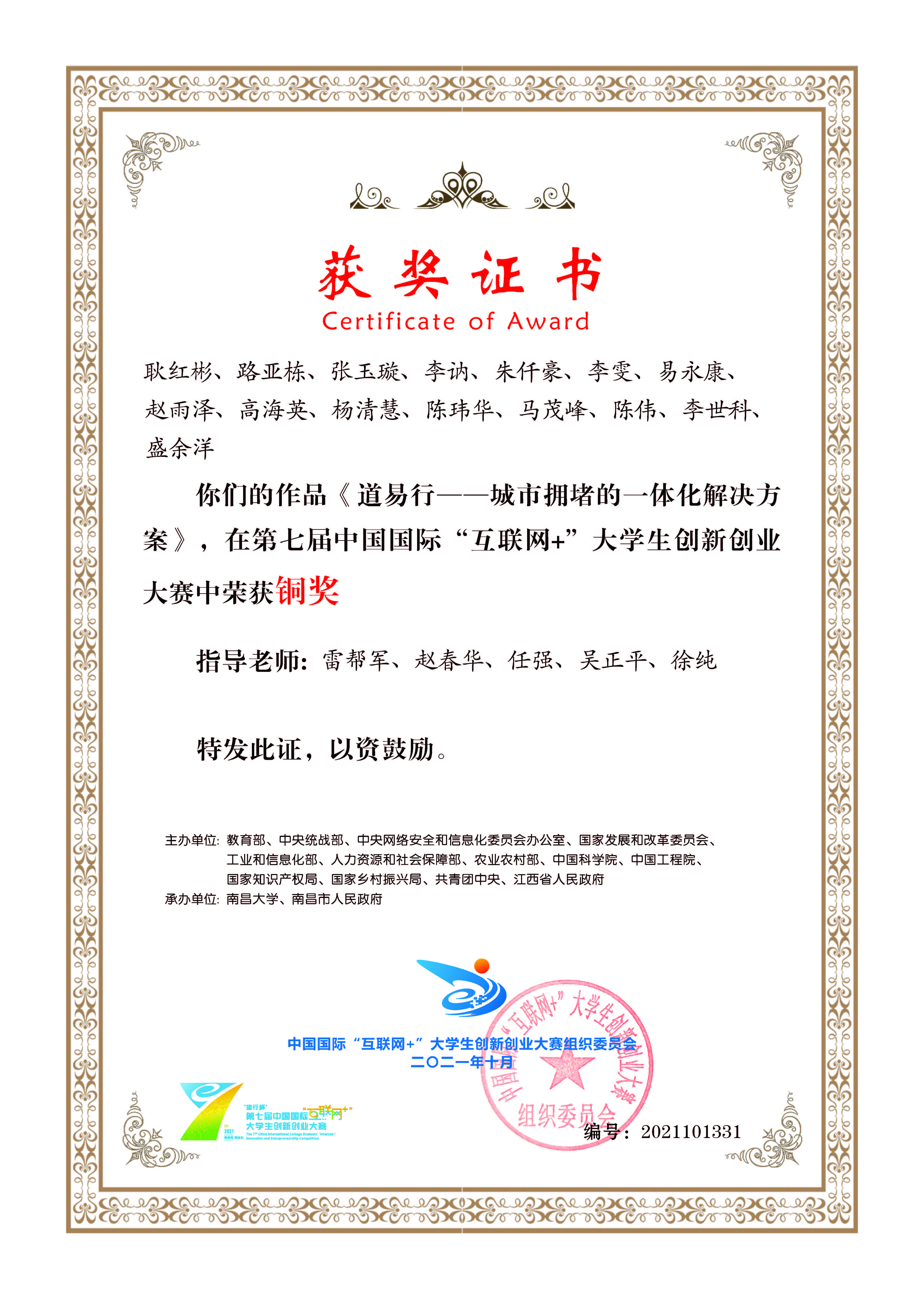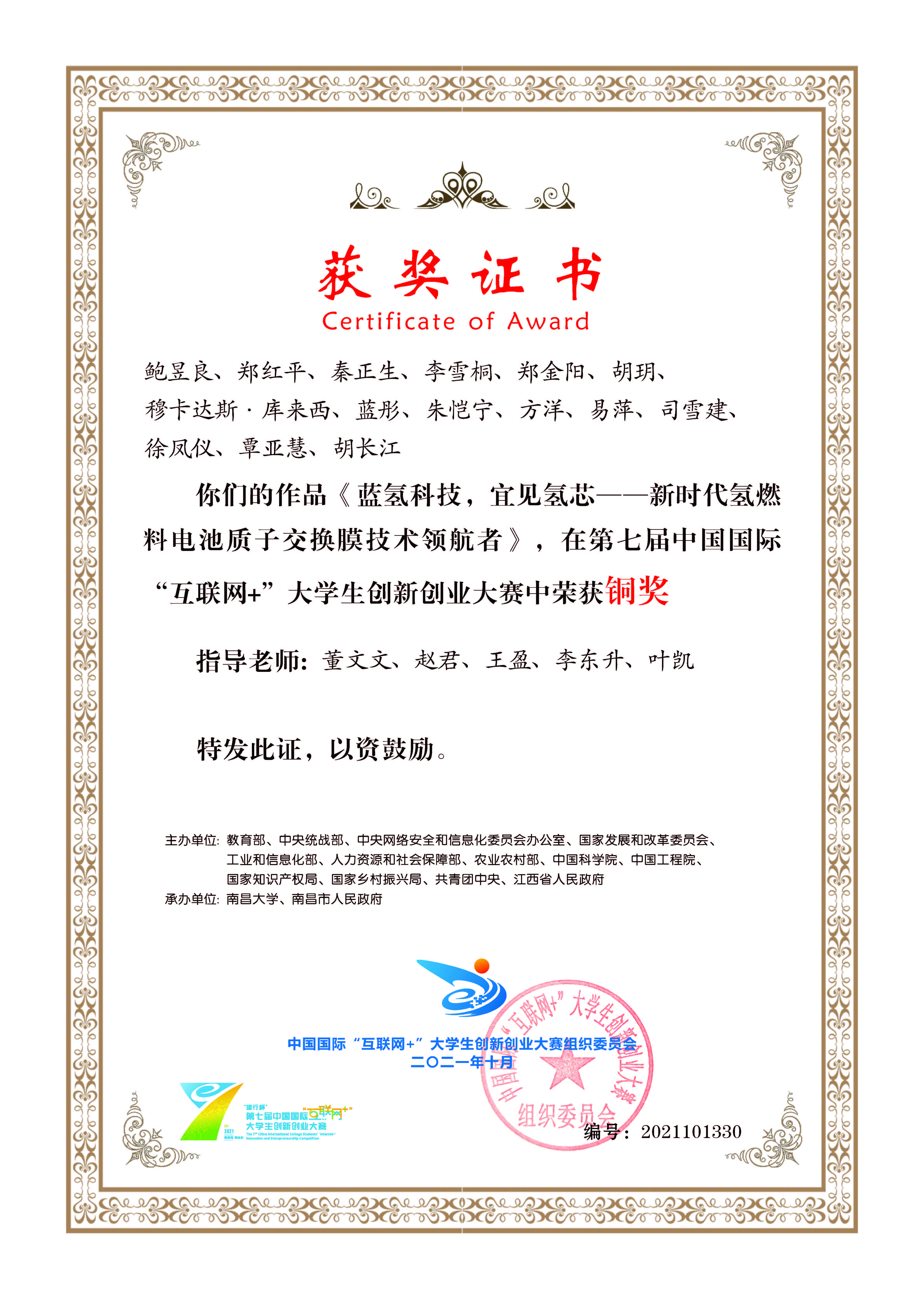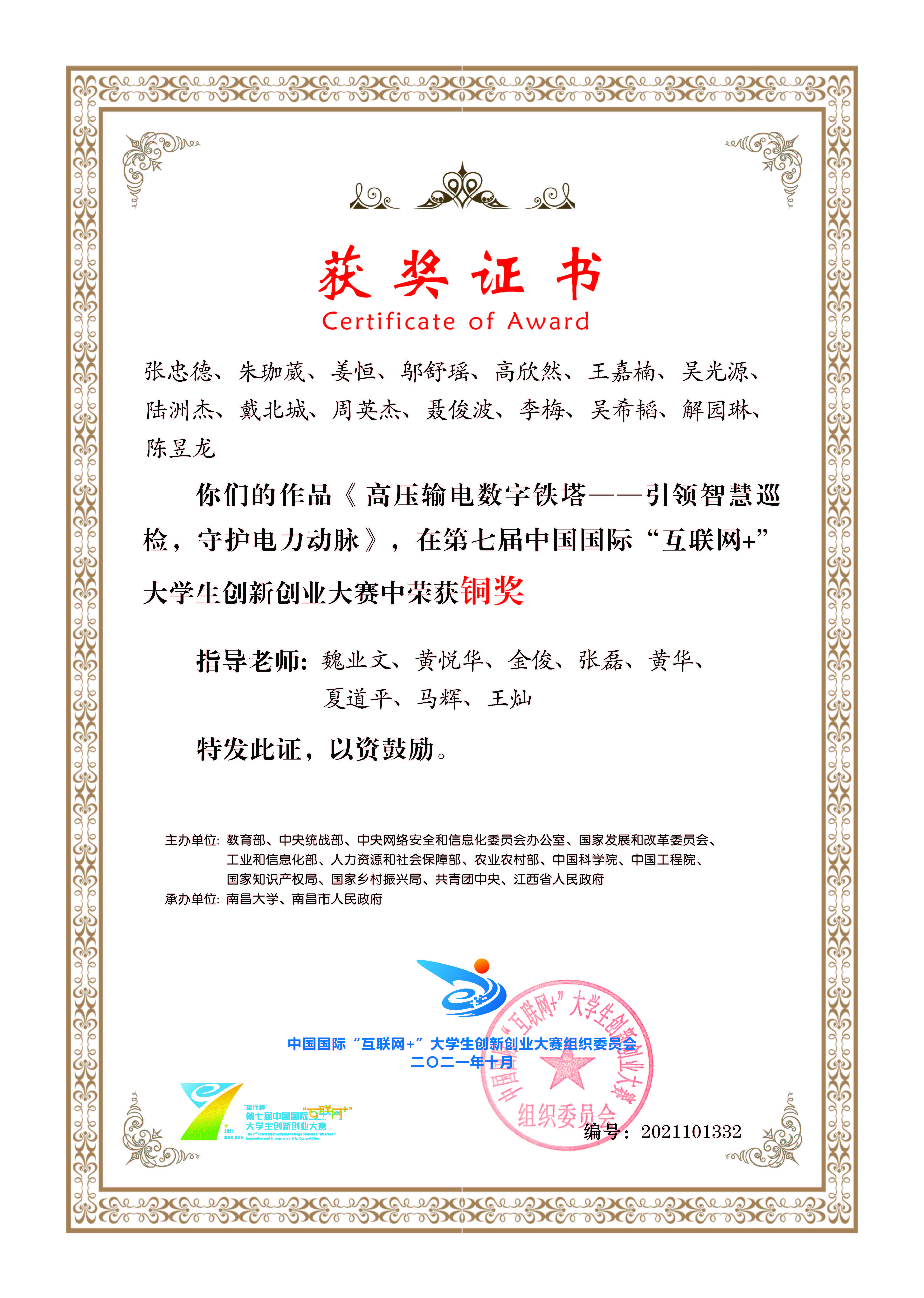 2018年-2022年中国国际“互联网+”大学生创新创业大赛荣获国家级奖项