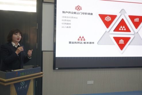 余小林围绕对公账户开立、使用、风险防范,远离校园贷,对公账户投资及专属服务团队五大板块展开。在对公账户开立环节,她详解开户尽职调查要点、所需资料及工行 “结算惠享套餐” 优惠政策,针对学生法人特殊情况给出销户或变更建议;账户使用部分,结合《刑法》条文与洗钱、集资诈骗等典型案例,强调合规操作与资金安全,分享 U 盾保管、定期对账等规范;校园贷讲解中,拆解六大类非法校园贷陷阱,结合真实案例警示风险,给出“找学校资助、选正规银行、理性消费”建议,并公布工行三峡大学支行专属服务团队信息,承诺提供“一站式”金融服务。